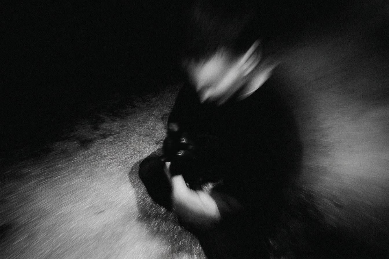 A man sits at the bow of a boat with a black cat on his lap. Behind them, another sailing boat sails under spinnaker. He is holding its sheet rope. The cat, or the boy on his lap, does not want to be stroked and dies. The man looks for a farewell letter in a cupboard.