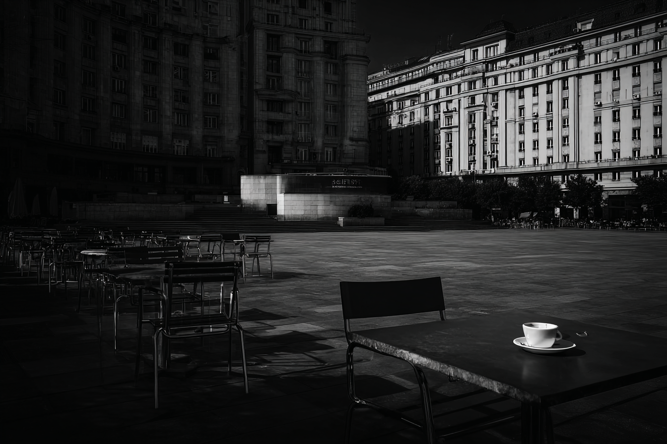 A man walks through an empty city past a café where he had placed an order. A prepared cup and plate wait on a small table outside, but he never came. He returns to the hotel, where an actress rehearses with a director. The man says goodbye with arrivederci.