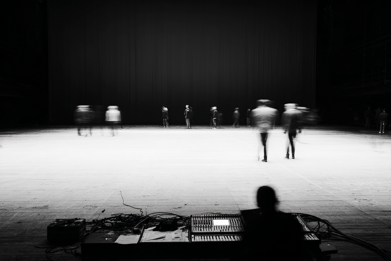 A man is to play the music for a play. The sound system isn’t connected. He doesn’t know the cues. The performance stops.