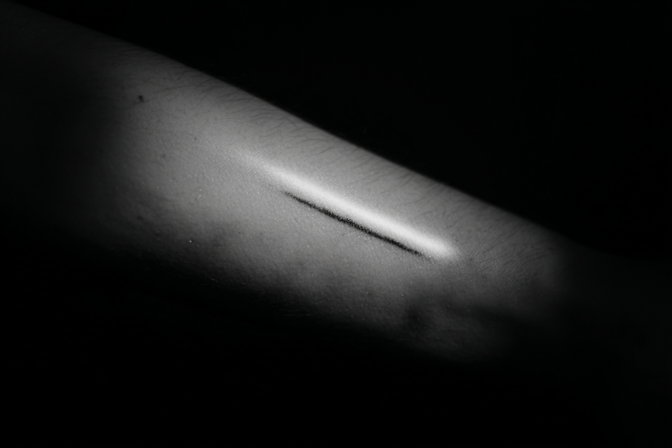 Something is next to a tattoo on an arm.